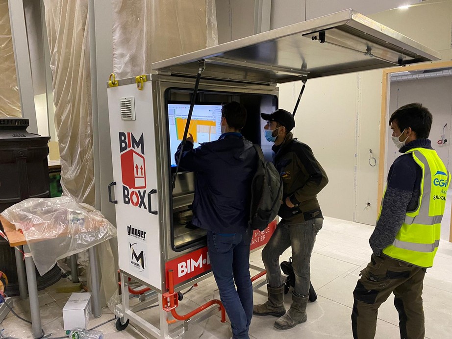BIM Box est une cabine mobile pour le stockage et la présentation des données BIM de chaque étape du chantier. Ces BIM BOX sont connectées en temps réel à notre BET, les chantiers restent donc infomés des évolutions et mises à jour des maquettes numériques via la plateforme TRIMBLE CONNECT BUSINESS